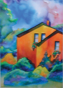 "Casa Vuelta" • 15x28 framed • Watercolor on Paper • Collection of the Lopez Family