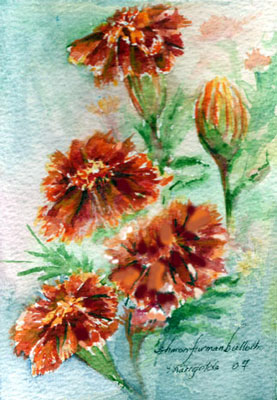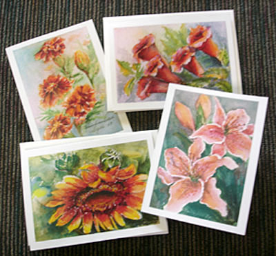 ![]() ![]() ![]() ![]() ![]() These 8 blank greeting cards are size 4 1/2” X 6” and come with 8 white envelopes in a nice self-sealing clear acetate bag. If a clear acetate box is preferred just let me know. Each card is printed on 110 lb white card stock and is a reproduction of my original watercolor painting. The Summer II Flower Collection Set contains two cards each of the following images: Marigold, Stargazer Lily, Sunflower, and Trumpet Vine. This set is $10 and is available at my Etsy Store. |