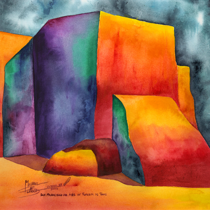 "San Fransico de Asís at Ranchos de Taos" 16x16 • Watercolor on Paper •